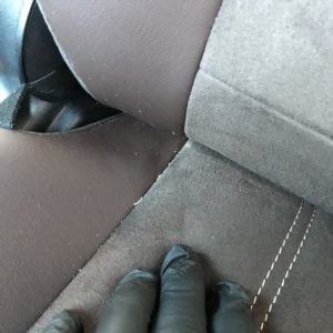 シート後ろに回り、座面と背もたれの間を嗅いでみると・・・ん、ん、ん、チョット臭います