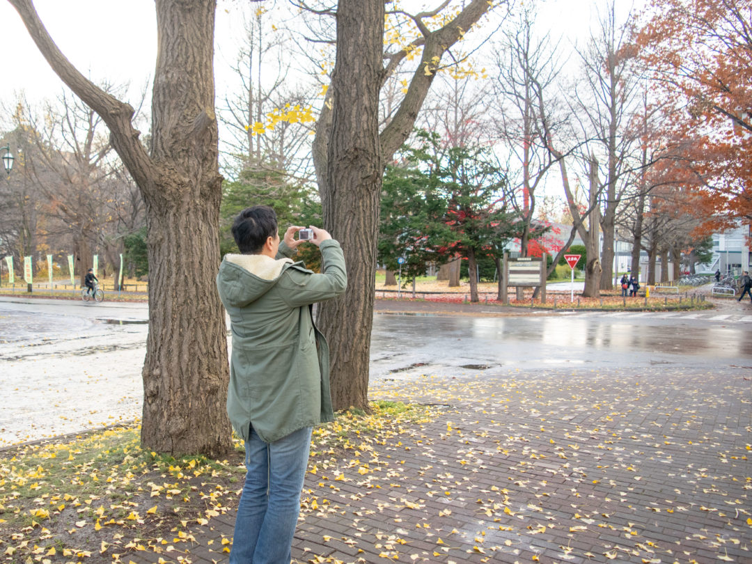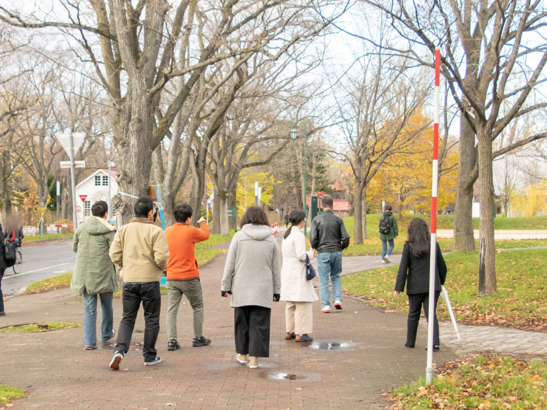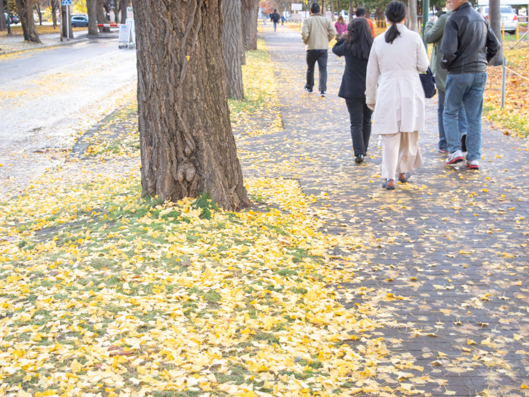 これから北大の銀杏並木まで歩きます。そこからぐるりと周る予定で距離はおよそ2キロほど。