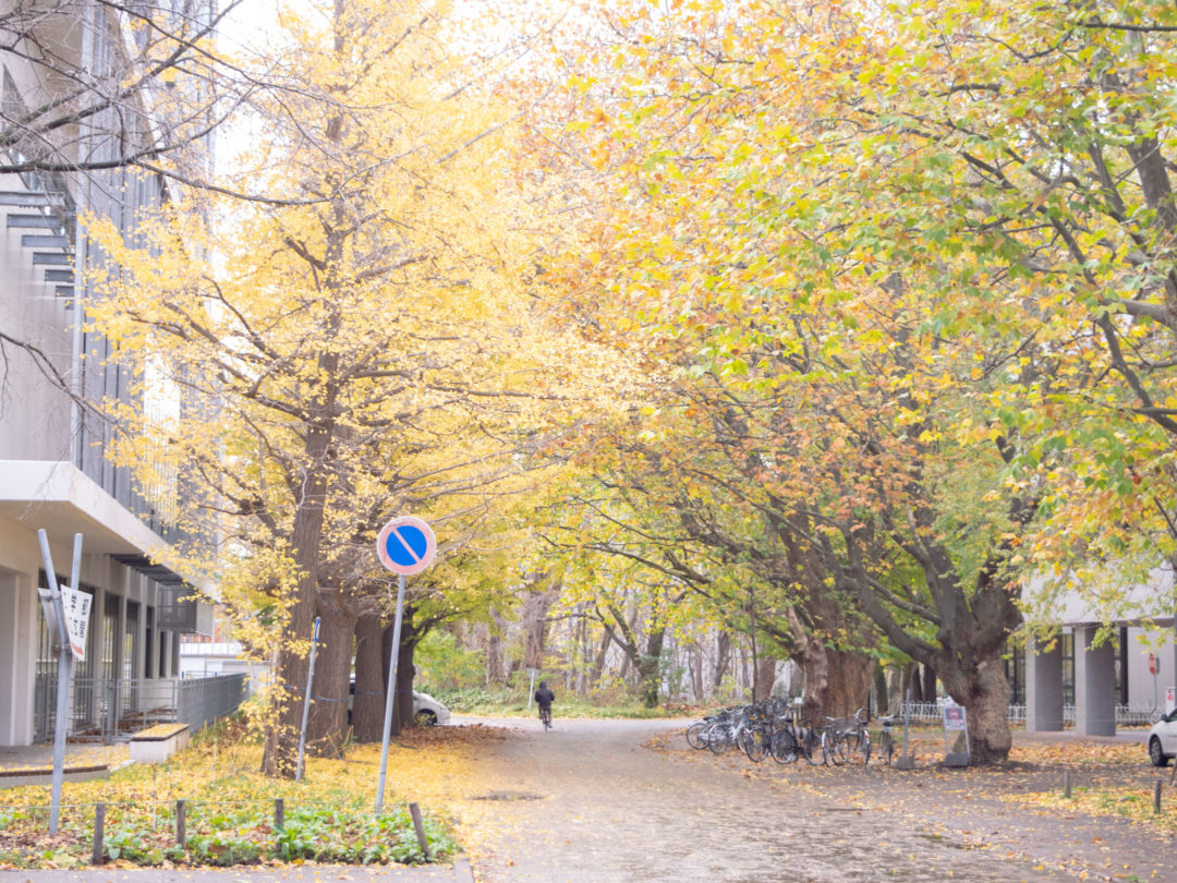 北大の外壁に沿って歩くので車の往来はほとんどないのですが、学生さんの自転車が頻繁に行き交うので要注意。