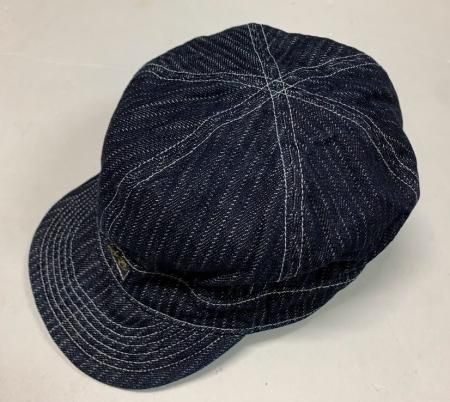 コリンボから洗いがされたライトオンスストライプジャガードデニム生地を使ったワークキャップです。