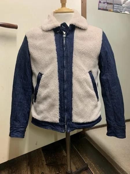 グリズリージャケットを生地は白タグのラストリゾートデニム生地を使用して作られ、ベンリリと名付けたこのジャケットは1856年から1936年まで生きた有名なベアハンターからきています。今回はムートンではなくカジュアルに洗いこめるようにアクリルボアで切り替えました。