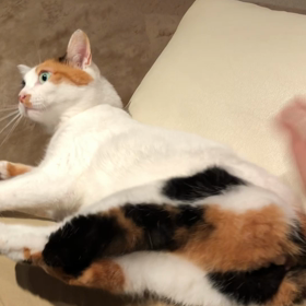 尻尾を振って喜ぶ猫。