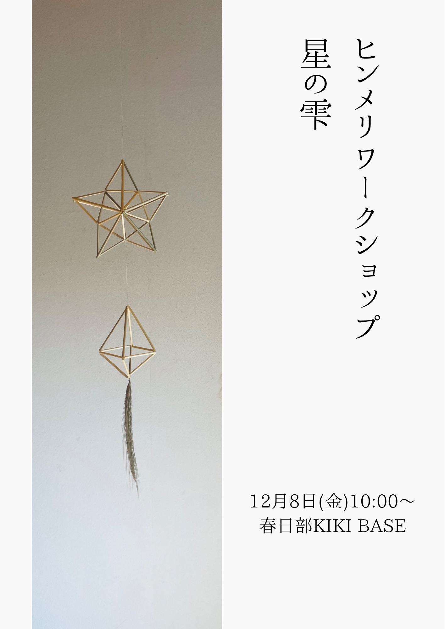 麦わらに糸を繋いで作るヒンメリ。