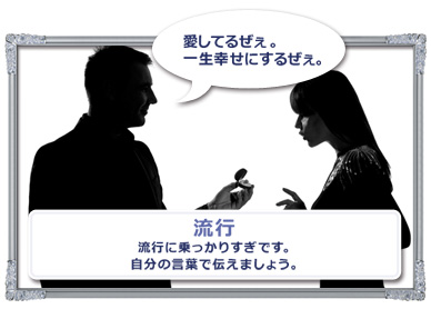 暇つぶしの診断は、考えてもない結果にあなたが言いそうな「プロポーズフレーズ診断」 PGIプロポーズフレーズ診断 女子のホンネがのぞける!男性向けプロポーズ準備マニュアル ”男のたしなみ プラチナ講座”はこちら 本音を気にしていたら、プロポーズしない私です。 そして、気がついたら、人生も終盤です。