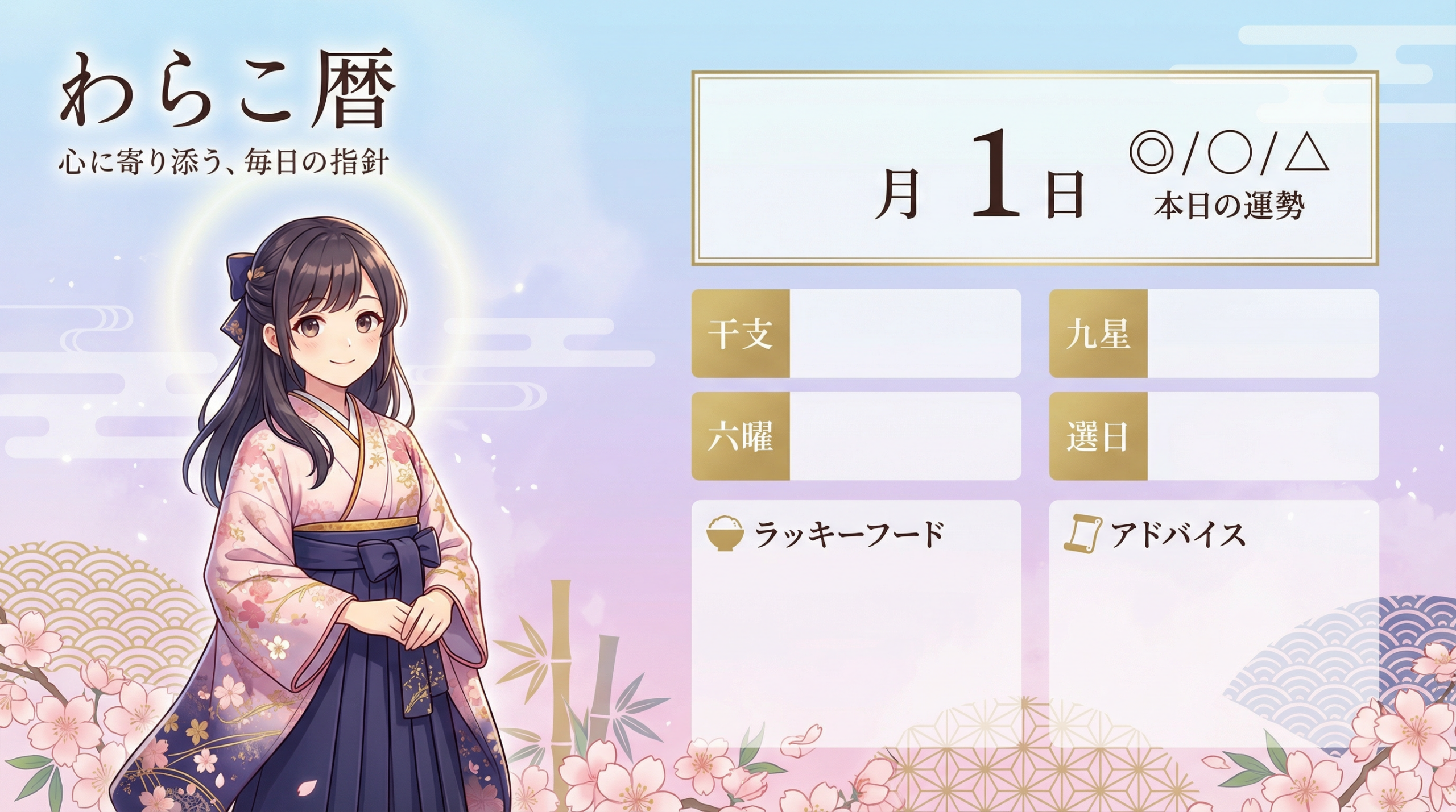 AI軍師は、古来より伝わる東洋の暦学(六曜・十二直・九星・二十八宿・奇門遁甲・周易(しゅうえき))を現代のAI技術で分析し、毎日の運勢を分かりやすくお届けするシステムです。