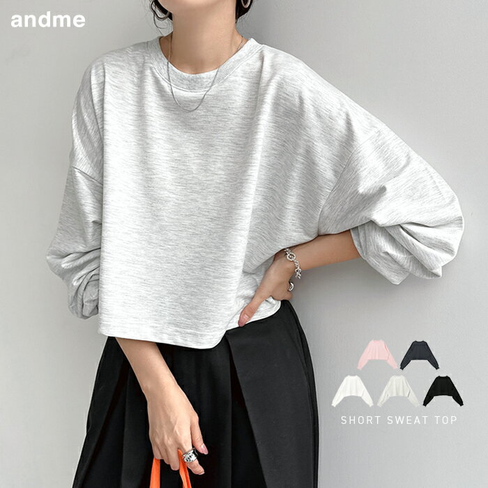 * 商品名:スウェット ショート丈 長袖 Tシャツ レディース ロンT 長袖Tシャツ トップス カットソー スウェットトップス トレーナー インナー オーバーサイズ 体型カバー ゆったり 楽ちん ボリューム袖 裏毛 薄手 コットン カジュアル トレンド 春夏 秋冬 春 秋 冬