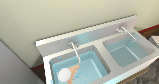 本作ではプレイヤーがラーメン屋の店主となり、次々と来店する客のリクエストに応えてラーメンや餃子、ビールを提供します。ルームスケールのVRゲームということでプレイヤーは舞台となる厨房の周囲を見回せるだけでなく、前後左右に移動することもできます。