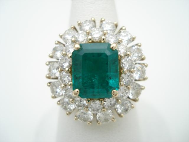 エメラルド/ダイヤ取り巻きリング
