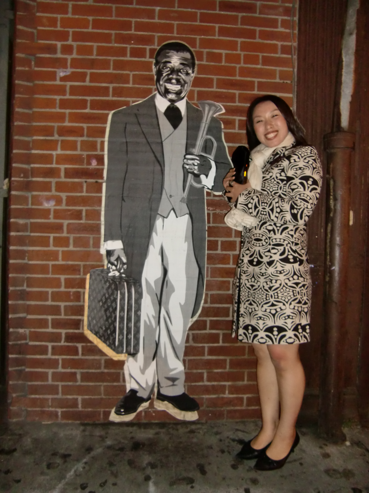 ↑サッチモの壁画とツーショット。コートは買って貰ったヤツ。