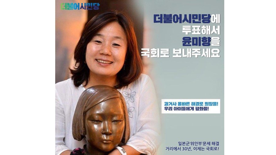 On the other hand, Yoon Mee-hyang, a former leader of the Korean Council was elected a member of the National Assembly from the Citizen Party.