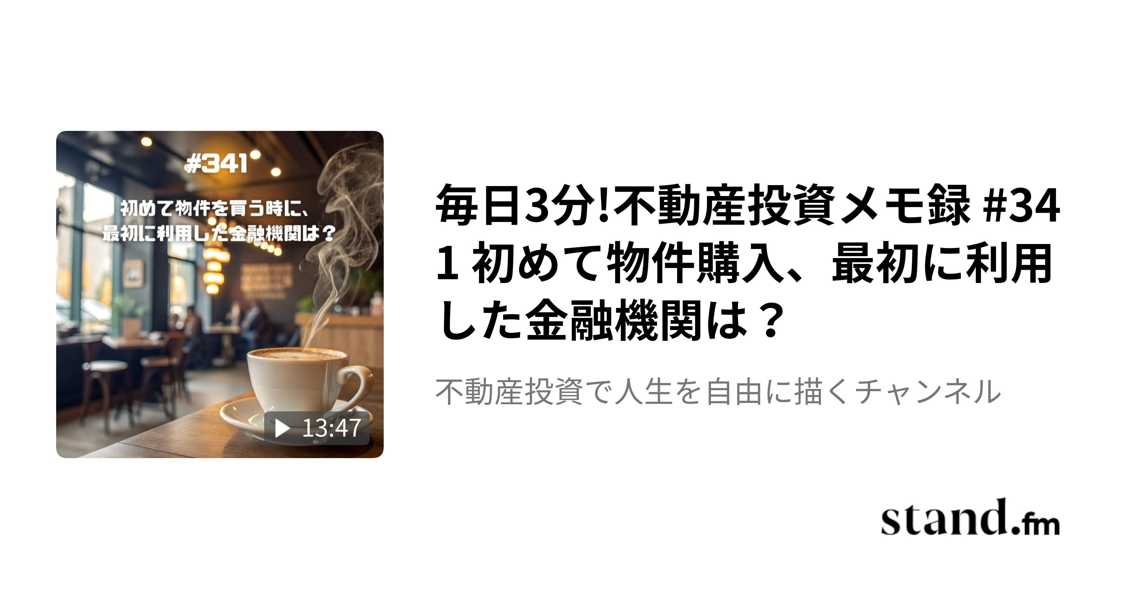 ▼毎日3分!不動産投資メモ録 #341 初めて物件を買う時に、最初に利用した金融機関は?