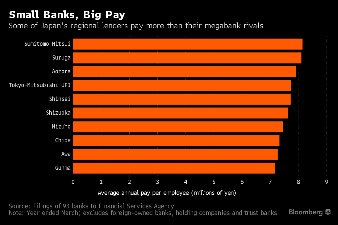 2017年7月5日のブルームバーグの記事によると、地方銀行の中で、スルガ銀行の年間給与がトップだったことがニュースになりました。