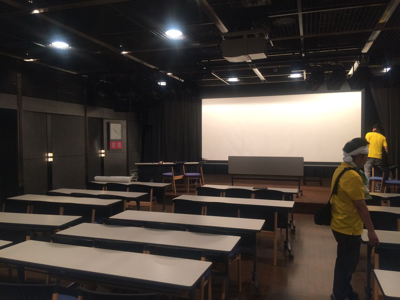 定員50名の会場はほぼ満席だそうで、スタッフの方々も前夜も遅くまで準備をされていたそうです。講演に向けて気合いが入ります。現在、控室で待機中。