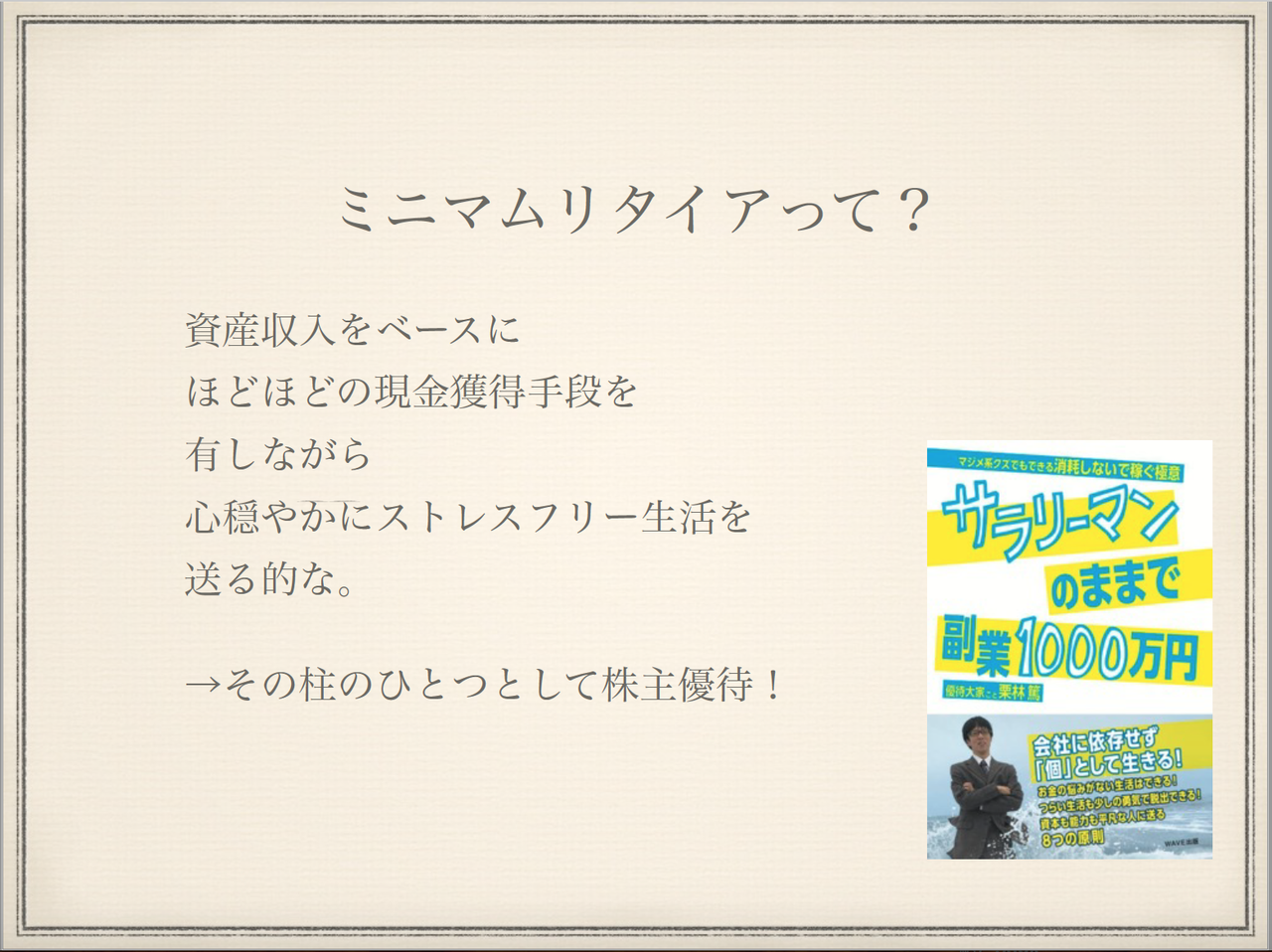 ミニマムリタイヤとは、優待大家さんの造語で、