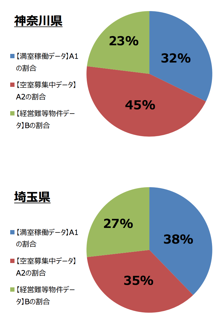 満室の物件と入居募集中の物件を正常な「経営物件データ」。