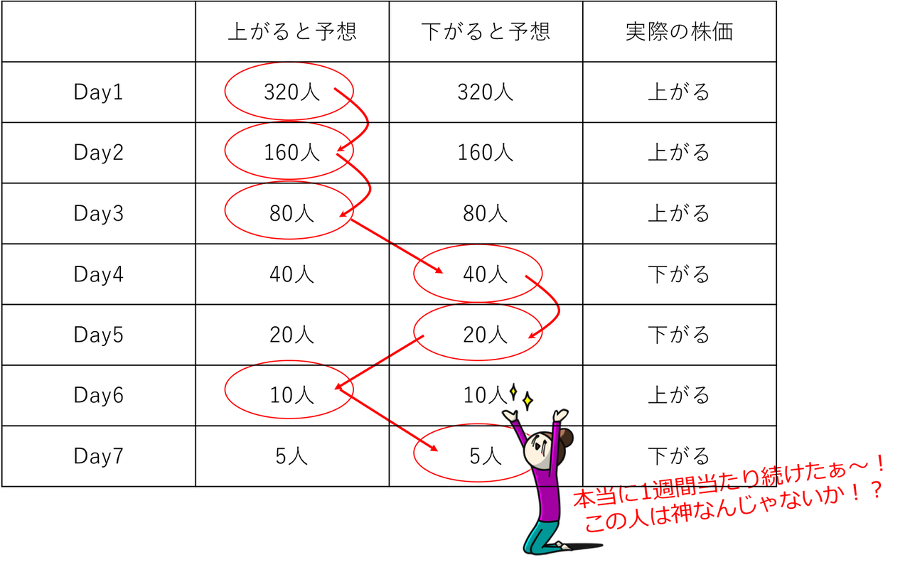 2日前の記事「絶対に予想が当たる予想屋の騙しのテクニック」で、