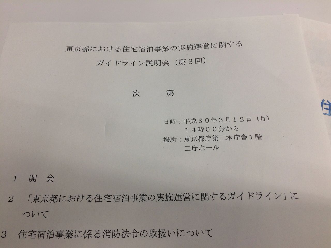 「東京都における住宅宿泊事業の実施運営に関するガイドライン説明会」