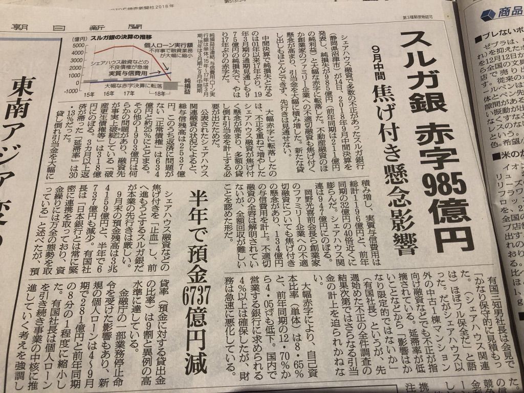 前回の記事では、スルガ銀行の決算が、