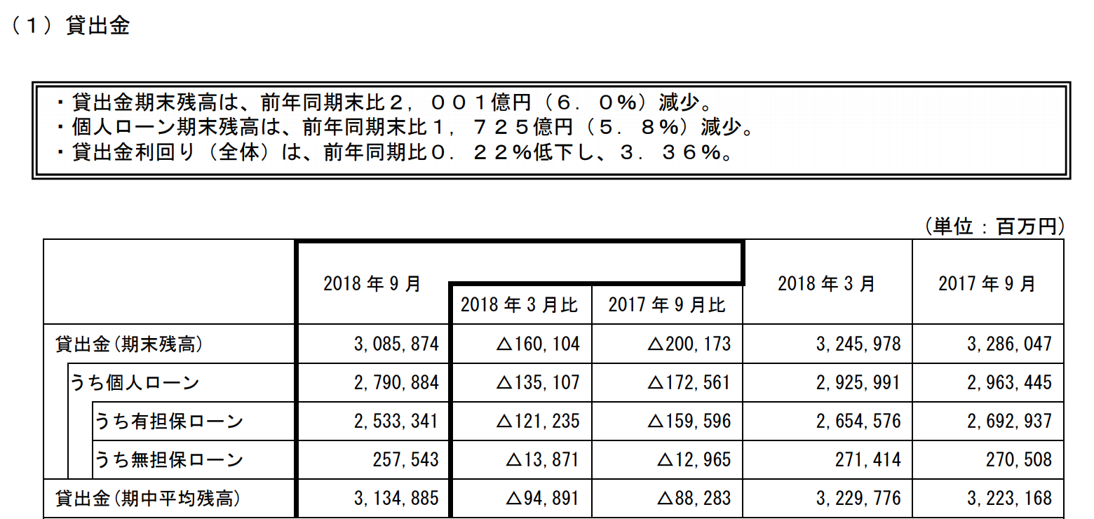 ・個人ローン期末残高は、前年同期末比1,725億円(5.8%)減少。