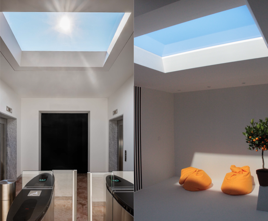 太陽と青空を再現したイタリア製のLED照明