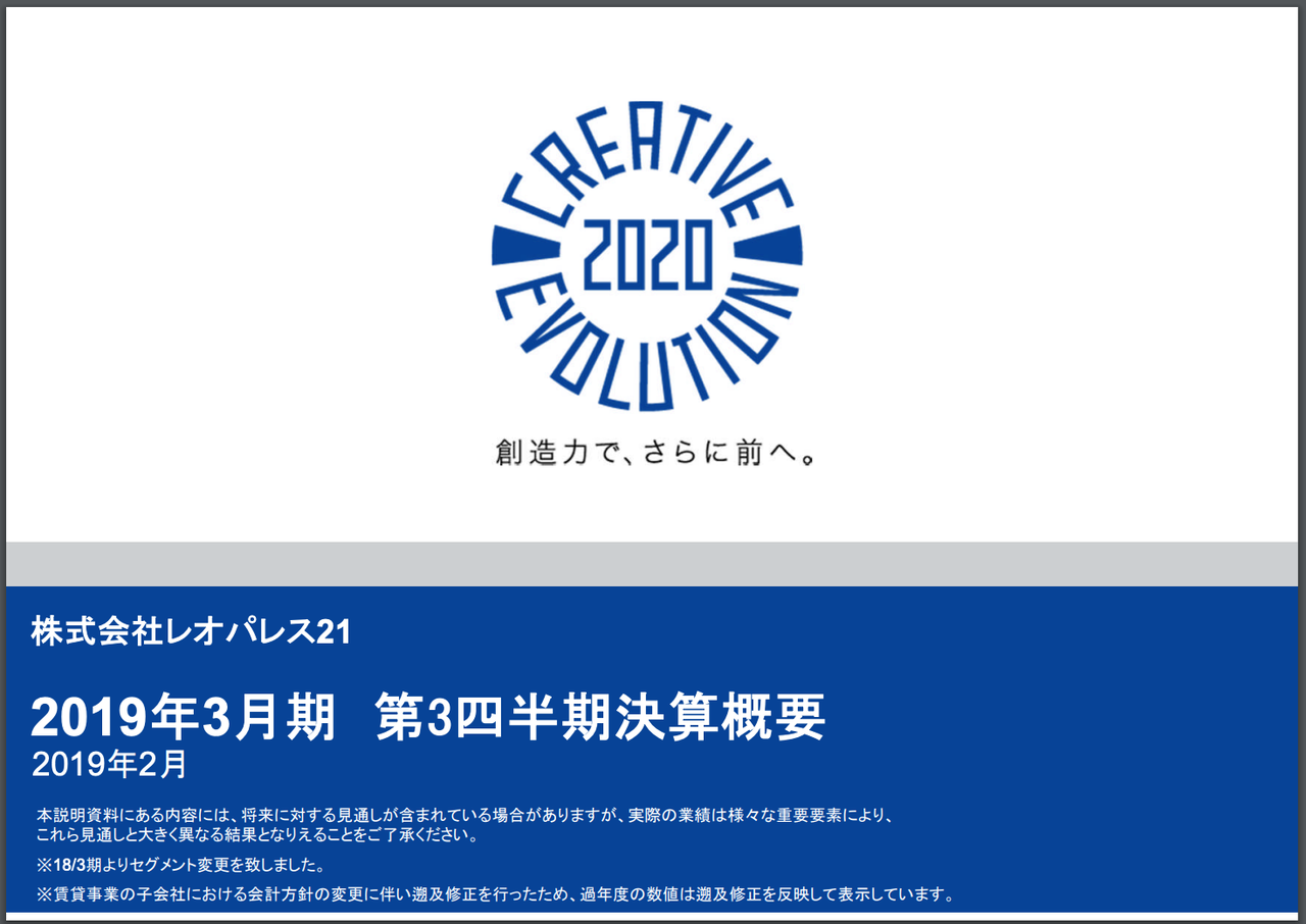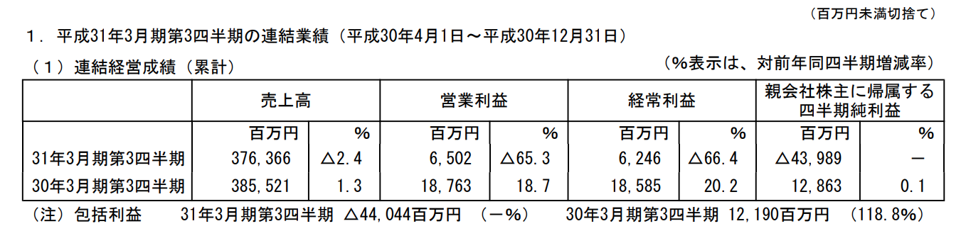 しかし、先日発表された「2019年3月期 第3四半期決算概要」を読むと、興味深い事実が浮かび上がってきます。