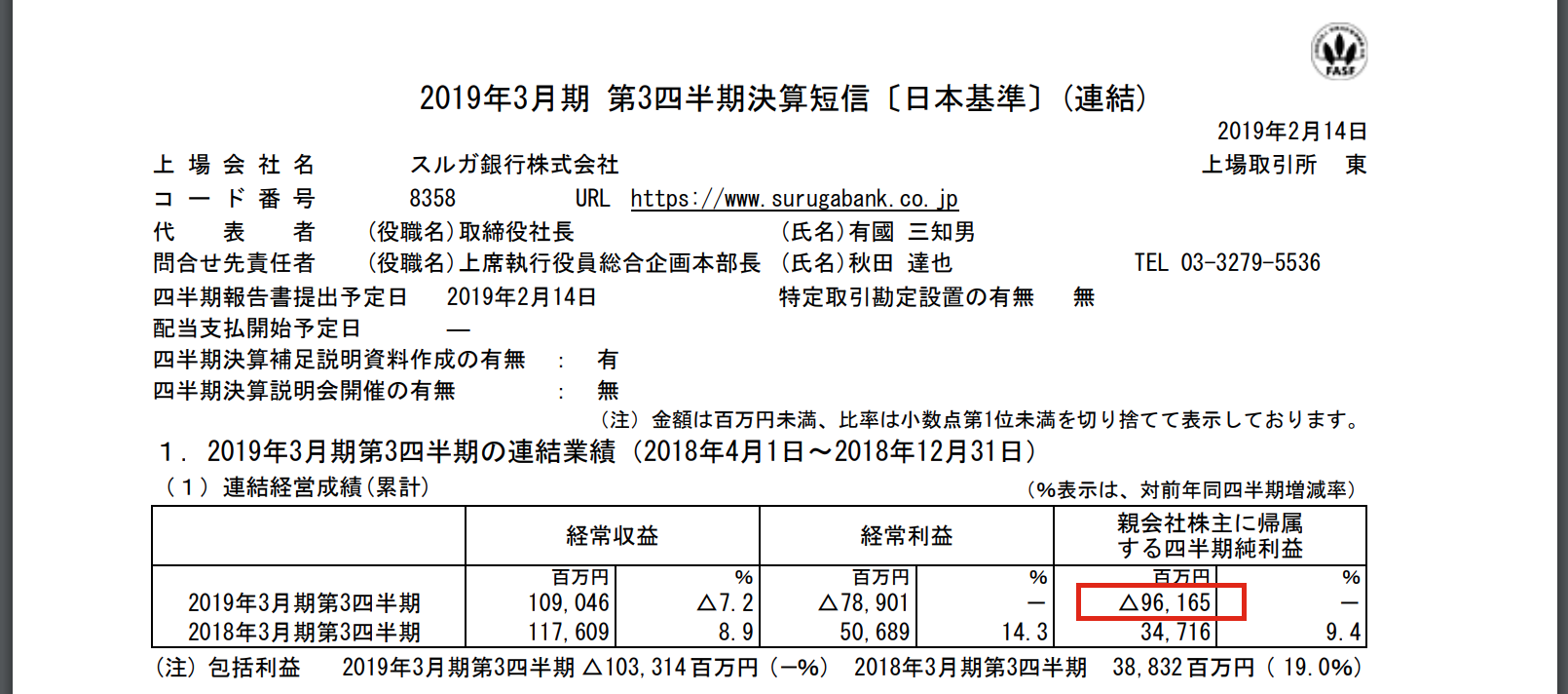 スルガ銀行の決済発表の中身を見ますと、