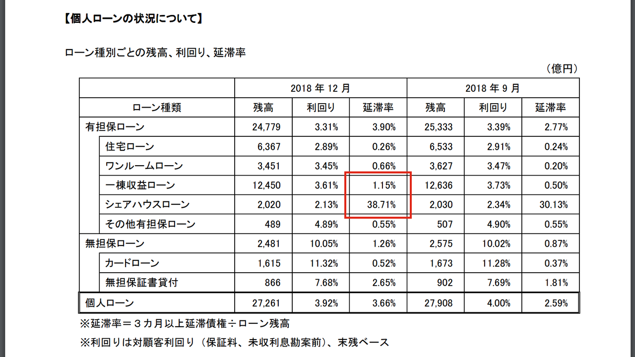 シェアハウス投資への融資は延滞率「38.71% 」。