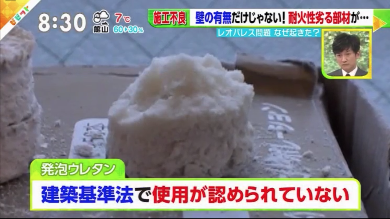 「発泡ウレタン」は、防火や耐火に問題ありのため認定されていなかったわけですが、同社は「防火や耐火は問題ない」として認定を取得しようという動き出たというのです。