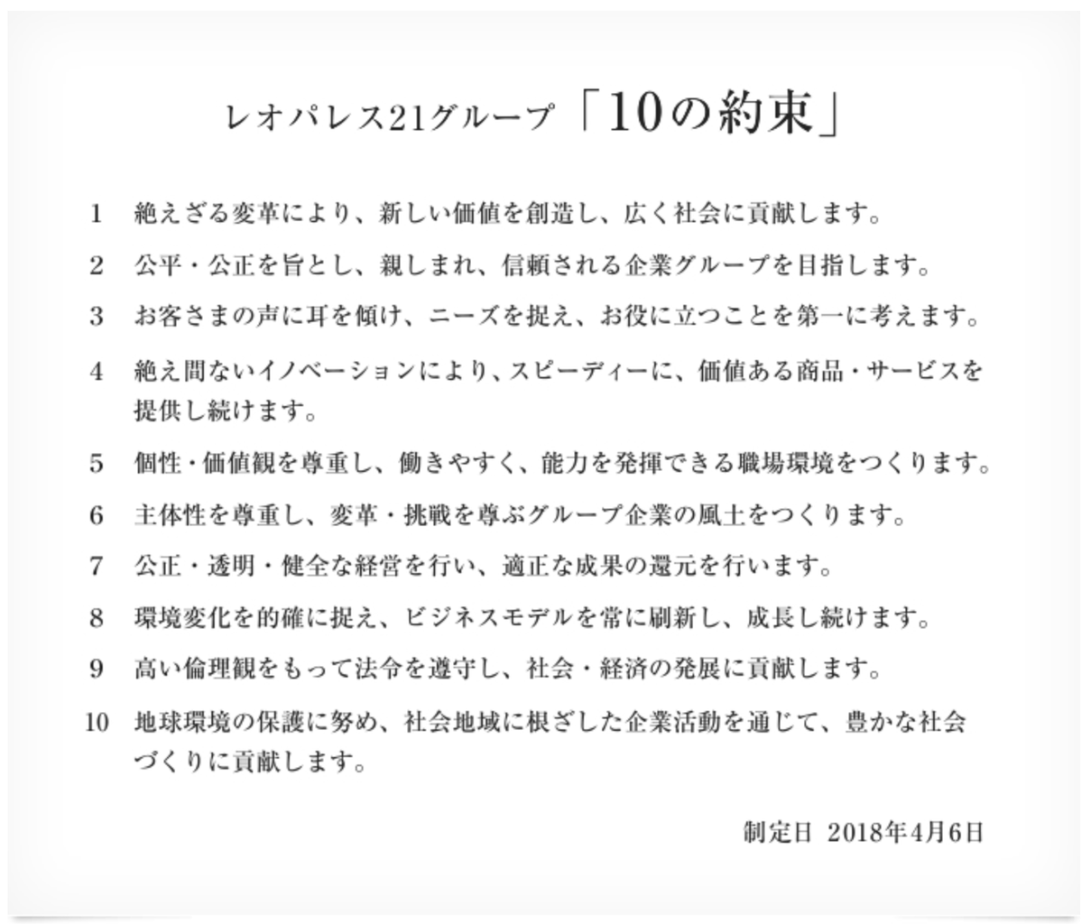 レオパレス21グループ「10の約束」がどこまで守られるのか、今後も見守っていきたいと思います。