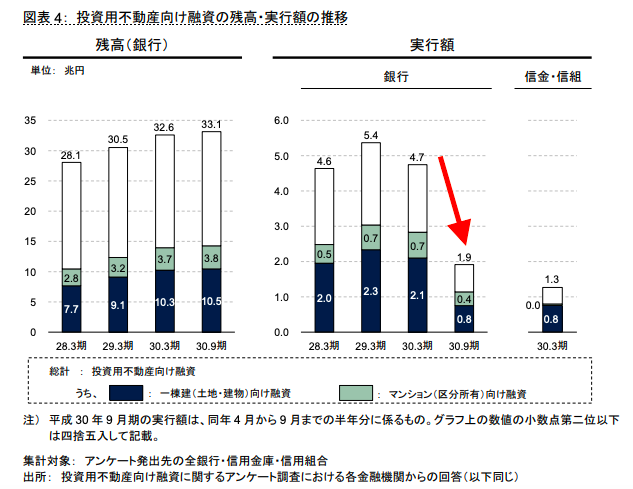 スルガ銀行や西武信金のような「収益不動産に積極的だった銀行の実行額が激減しただけ」だという見方もできます。