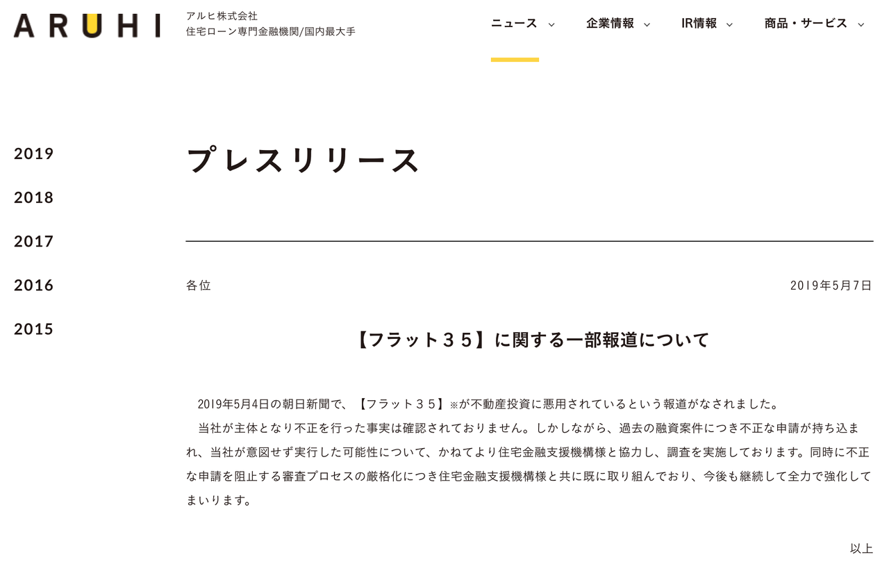アルヒのプレスリリースに「当社が意図せず実行」とあるように、金融機関側は「知らなかった」「分からなかった」としていますが、うすうす気がついていたのではないかというのが私の意見です。