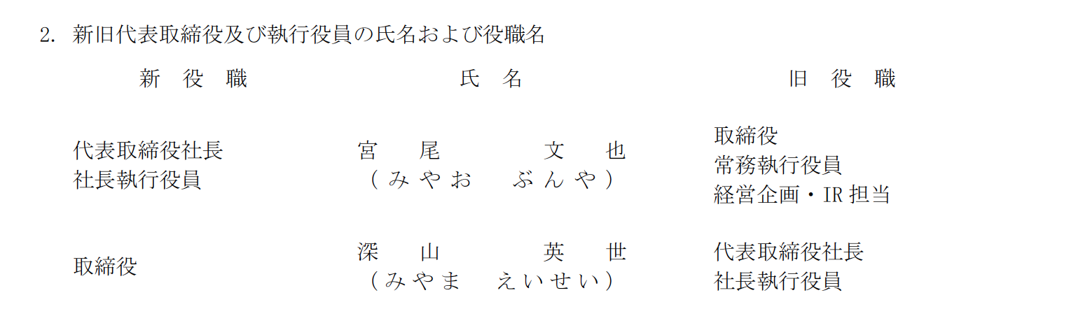 (「代表取締役及び執行役員の異動に関するお知らせ」)