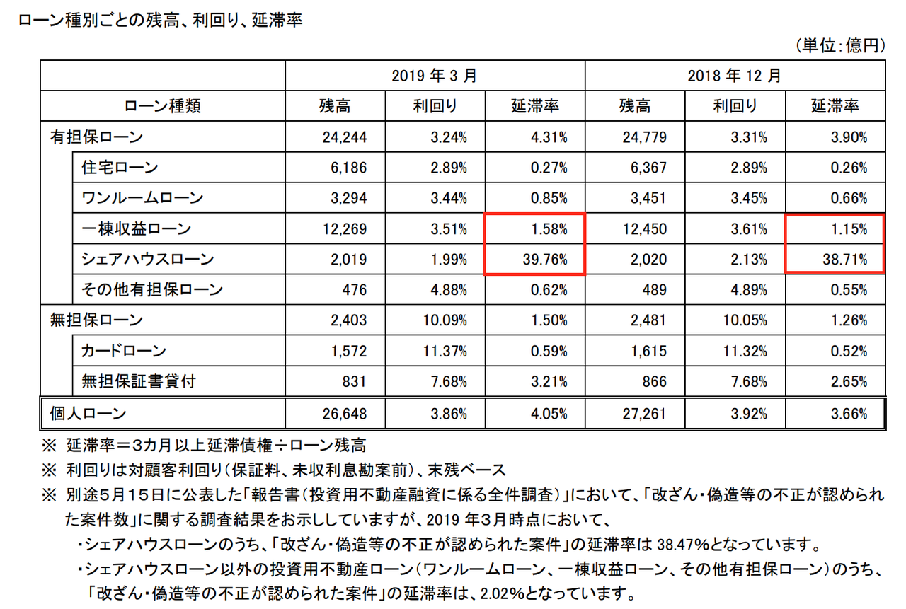 その証拠に、先日報告された「2019年3月期 決算」では、収益物件への融資の延滞率が上昇しています。