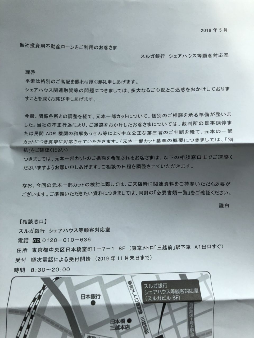 先週末からスルガ銀行から融資を受けている人に1通の封書が届き出しています。