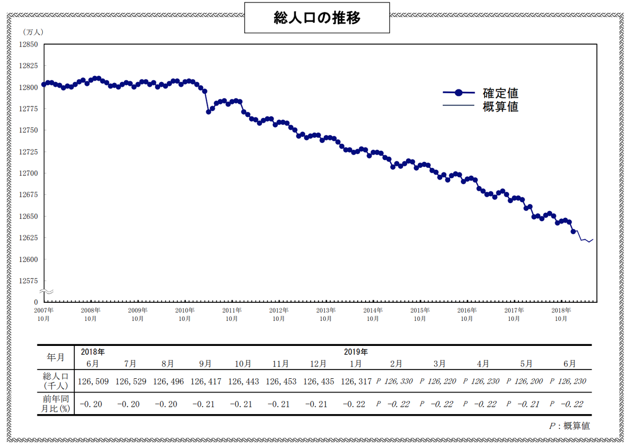 ・令和元年6月1日現在の総人口1億2623万人、前年同月と比べて「28万人」減少