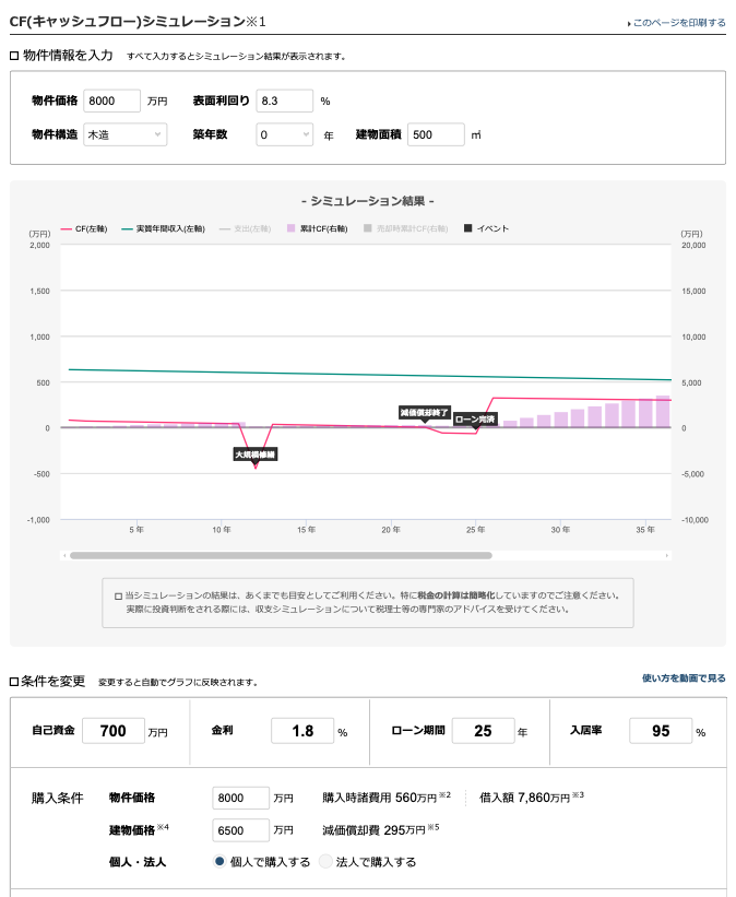 念の為に楽待の無料で使えるとツールでシュミレーションしてみましょう。