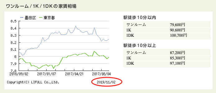 東京都墨田区の家賃相場を例に取ると、「最大で14000円以上」も家賃相場がアップしているのです!驚