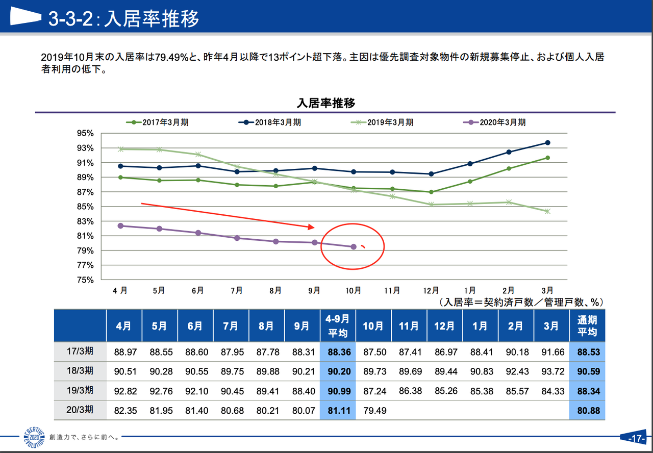 レオパレスの決算発表資料をご覧になっていただくと分かるかと思いますが、2017年の年末に「ガイアの夜明け」で問題が報道されてから業績は急降下です。