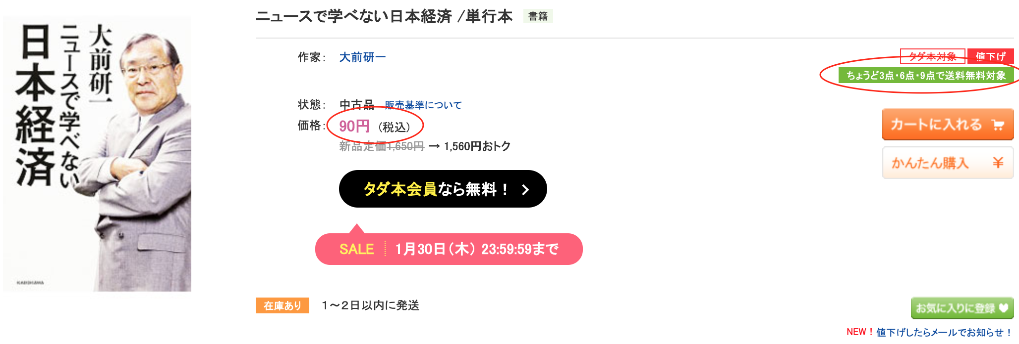 一方で、ネットオフで探してみると、「90円+配送料無料」※条件あり