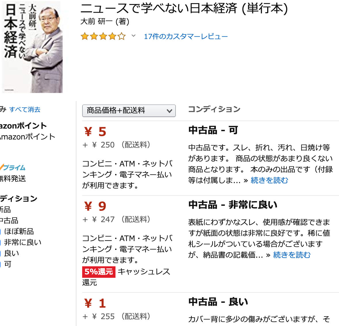 しかし、たとえば安さを求めてある本をAmazonで1円で購入するとします。