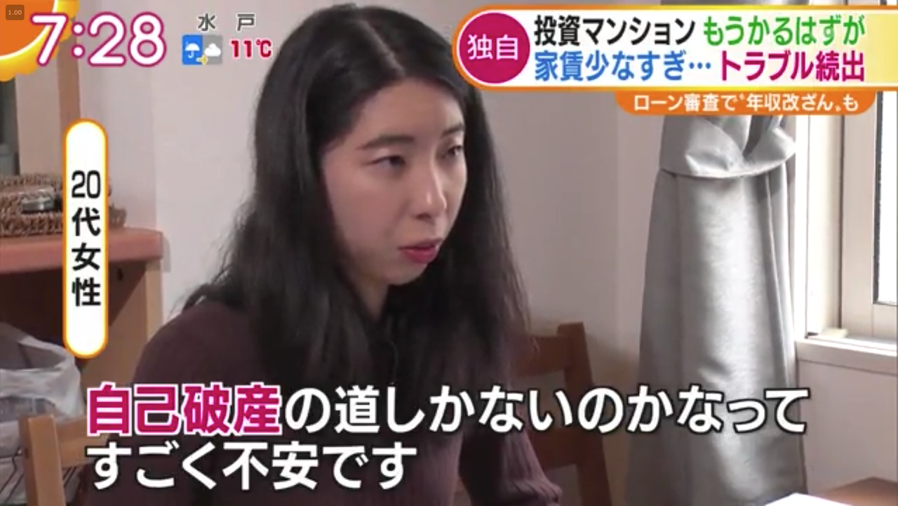 不動産業者から問題ないと言われ、フラット35を使って投資目的で東京・足立のマンションを約1800万円で買った埼玉県の20代男性は、契約時に計900万円強の架空のリフォームや家具購入の融資契約も結ばされた。信販大手2社への融資申込書には男性のものではない印鑑が押されていたという。