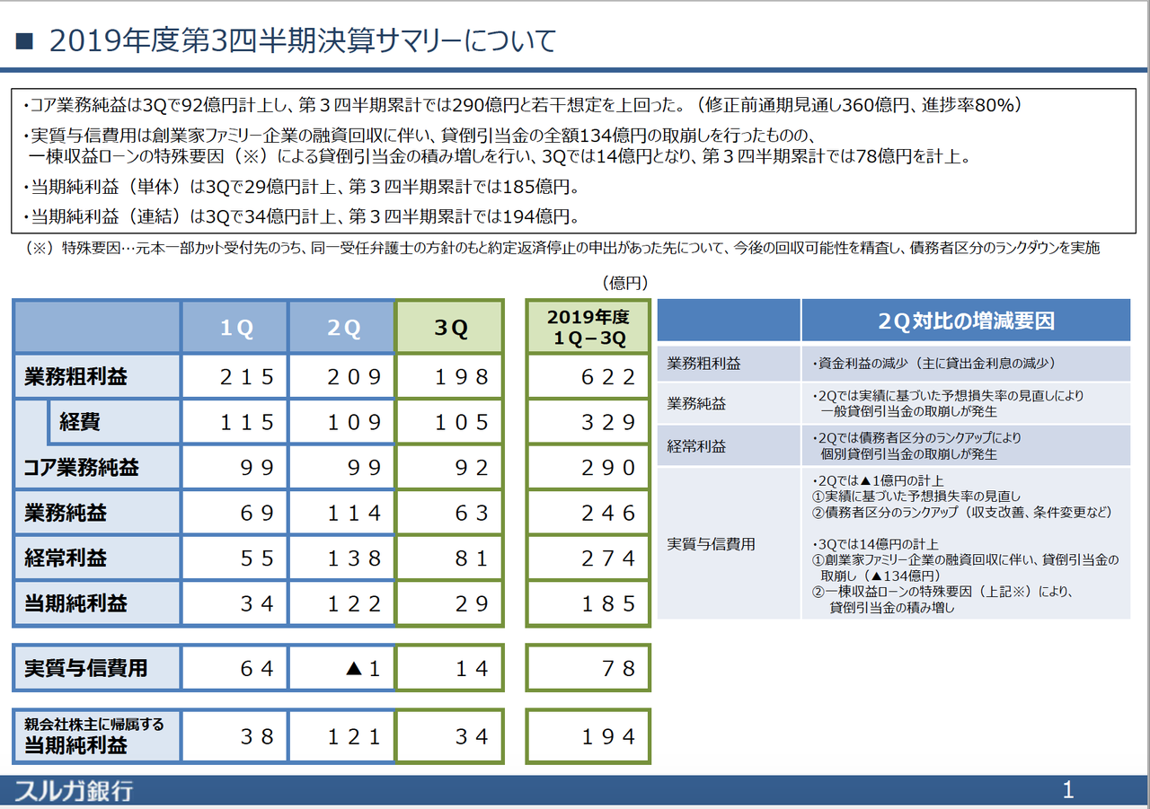 (スルガ銀行「2019年度第3四半期 決算概況」より)