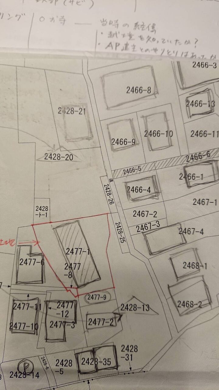 しかし残念がら、図面はずれているものの、道路に接していないことはたしかでした。。。