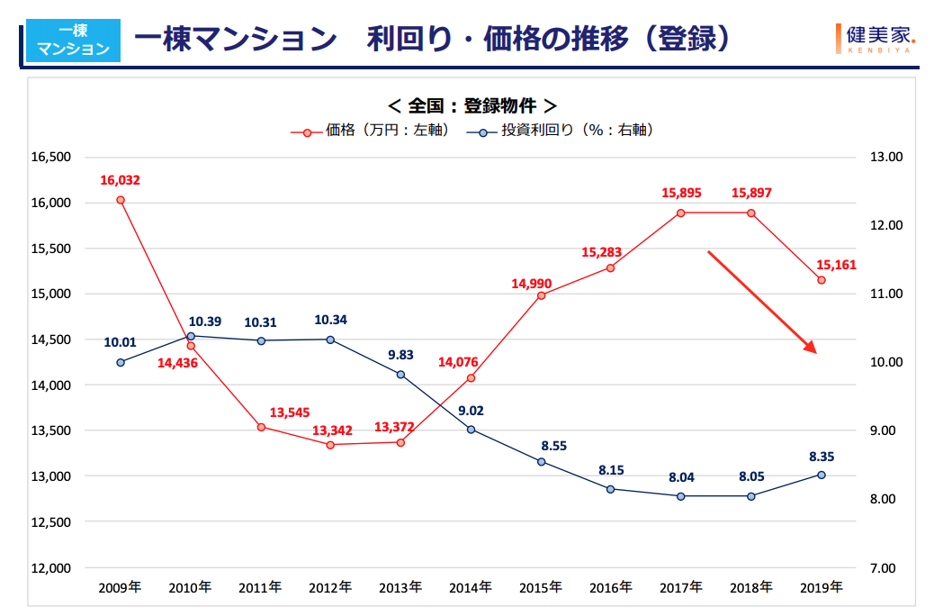 しかし、2018年のかぼちゃの馬車問題 → スルガ銀行不正問題で、右肩上がりだった不動産価格は反転。