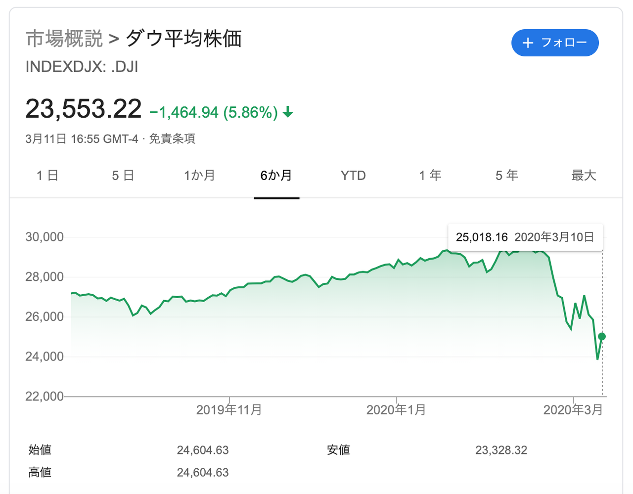 さらに、今年に入り新型コロナウィルスの影響拡大を受けて、株がとんでもないことになっています。