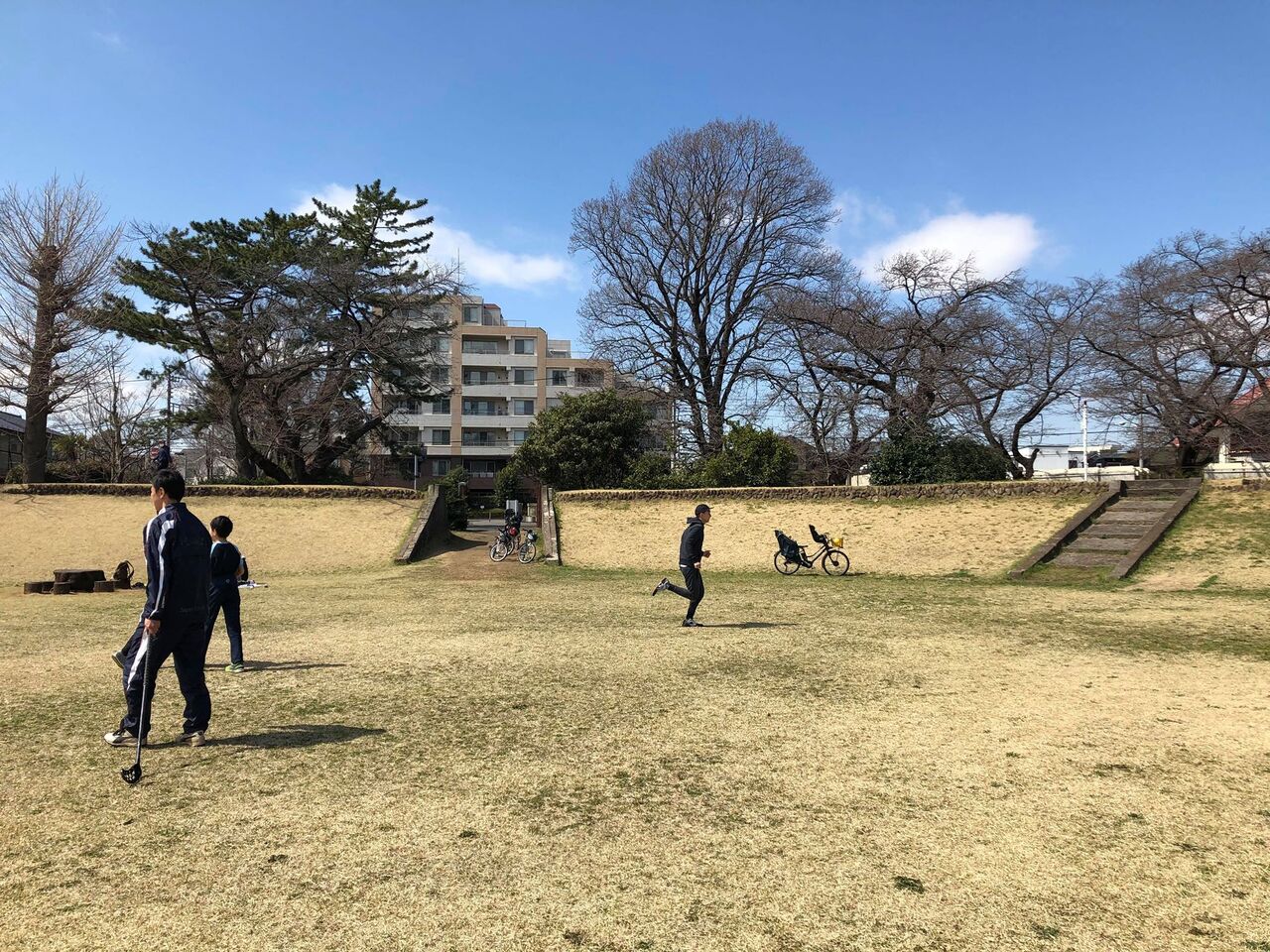 今日の午前中は、新型コロナウィルスの影響で行き場を失った子どもたちのために、近くの公園でホッケー教室を開催していました。