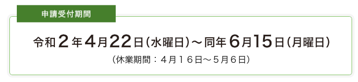 来週「令和2年6月15日(月曜日)」で受付終了となります。