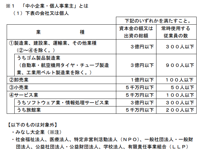 さらに、「うちは対象外だろ!?」と諦めている人もいますが、都道府県によって対象業種が異なります。