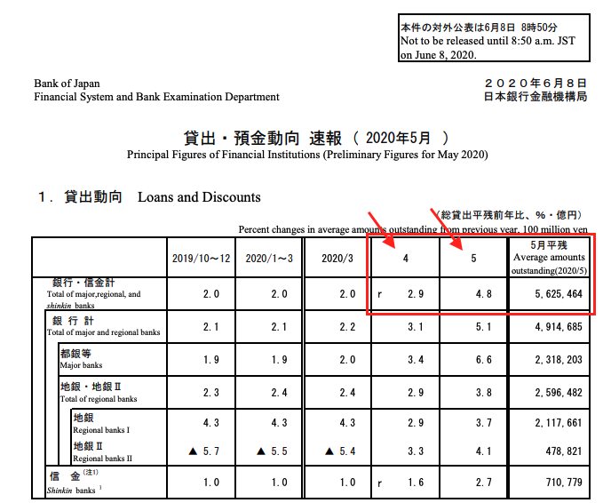 先日、日銀が発表した「貸出・預金動向(速報)」によると、4月から2カ月連続で過去最高を更新し、伸び率の大きさは統計開始以来最大となったようです。