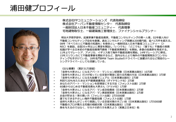 不動産投資業界では大御所の浦田健さんも、以前講演して頂いた時に、
